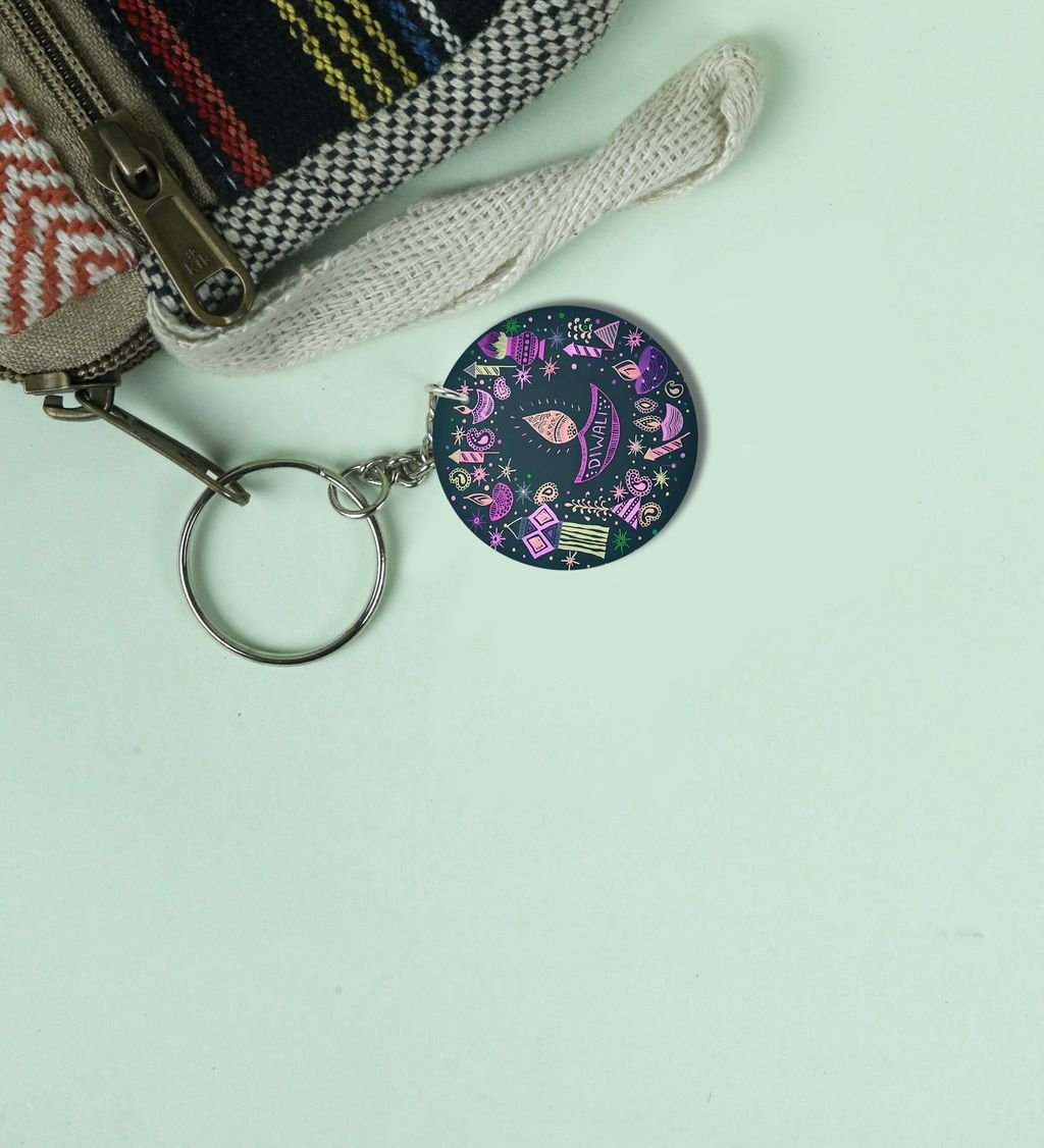 Auspicious Fireworks Shine Diwali Printed Round Keychain Pack of 2