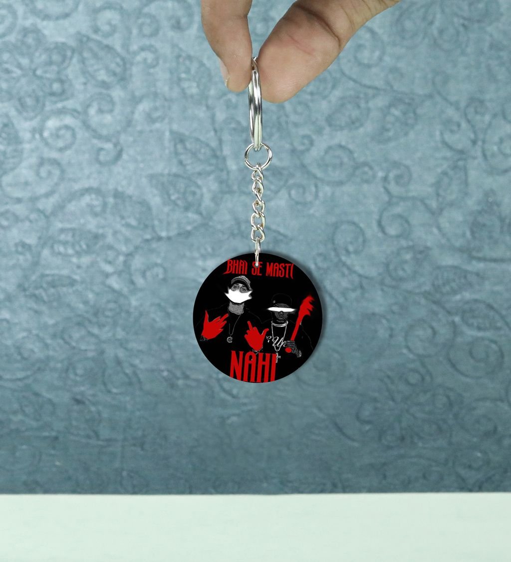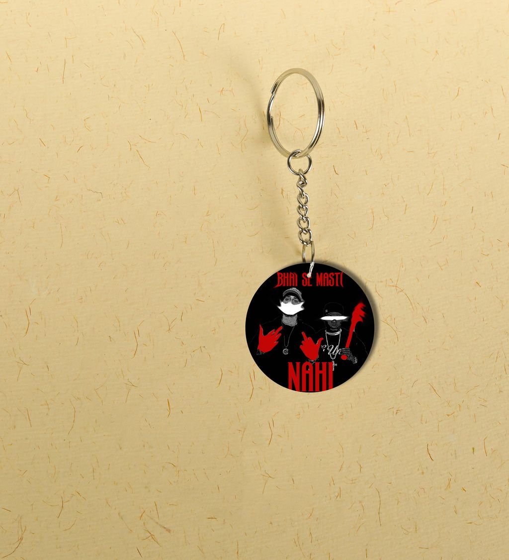Bhai Se Masti Nahi Attitude Design Printed Round Keychain Pack of 2