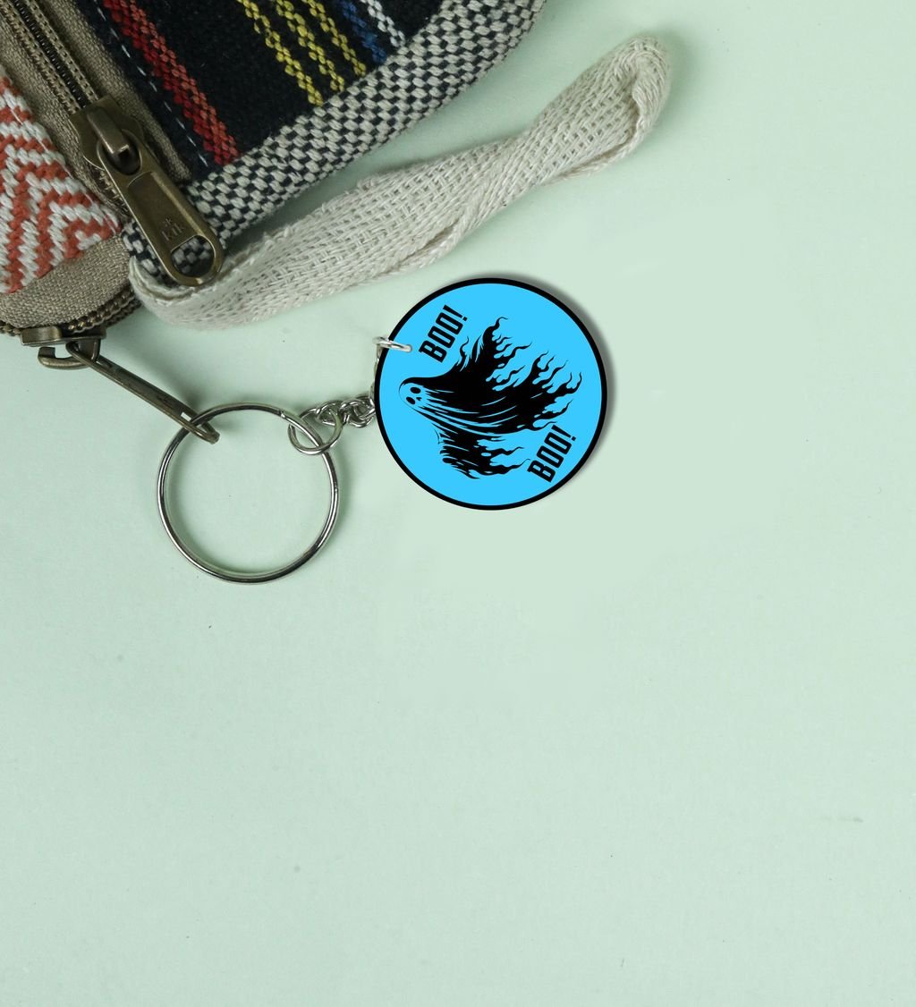 Charming Scary Ghost Saying Boo for Halloween Printed Round Keychain Pack of 2