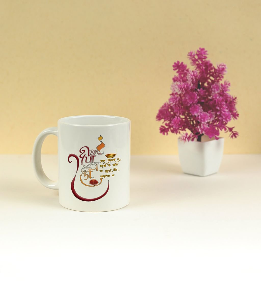 Celebrate the festival of lights with every sip! This beautifully designed Happy Diwali coffee mug adds a festive glow to your mornings and cozy evenings. Featuring vibrant diyas and elegant patterns, it's perfect for gifting or enjoying your favorite brew during the celebrations. Make your Diwali sparkle