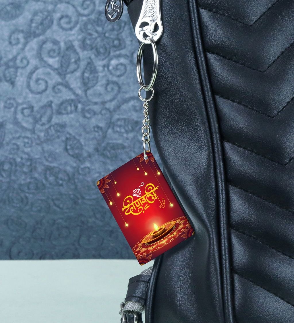 Celebrate the spirit of Deep Utsav with this vibrant rectangular keychain, inspired by the radiant glow of Diwali lamps. Featuring festive colors and intricate patterns, it adds a touch of joy and tradition to your everyday carry. Lightweight and durable, it's perfect for gifting or keeping the festive vibes close all year round. Carry a piece of the festival of lights wherever you go.
