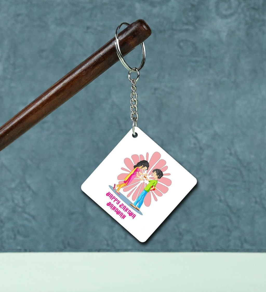 Contemporary Rakhi Moments in Festive Style Printed Keychain Pack of 2
