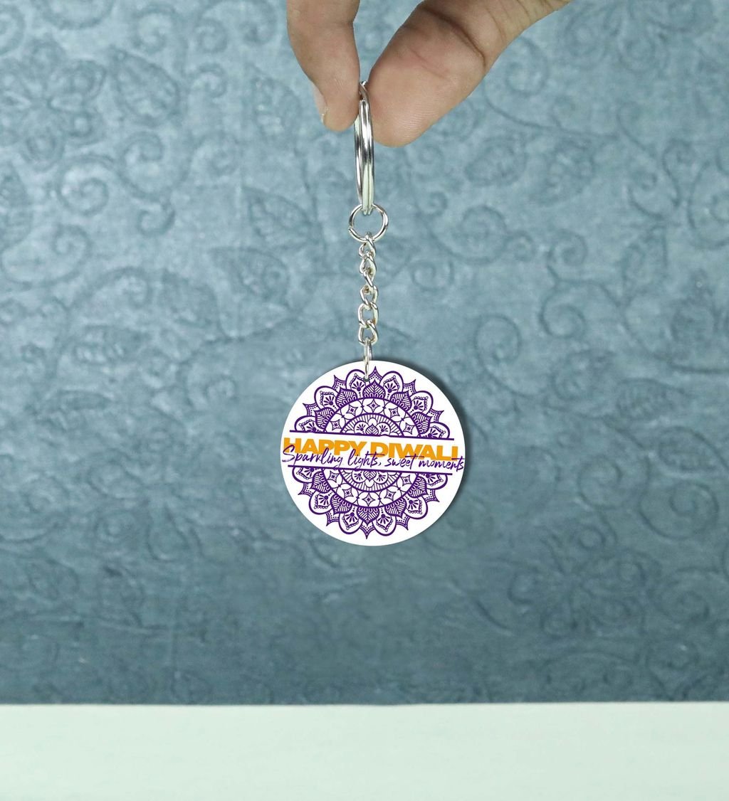 Diwali Magic Starts with First Light Printed Round Keychain Pack of 2