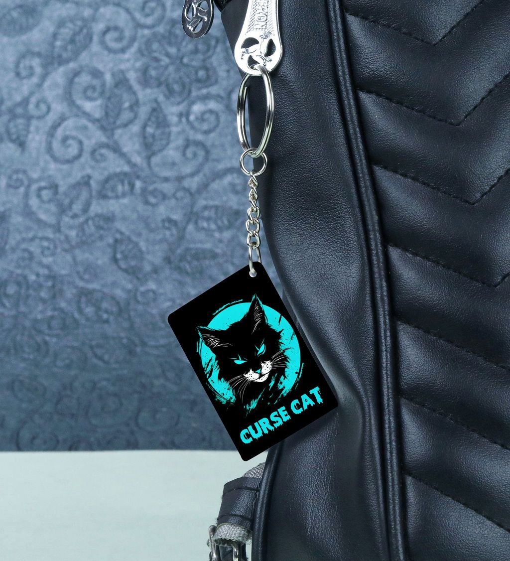 Electric Eyed Curse Cat Graphic Art Printed Keychain Pack of 2