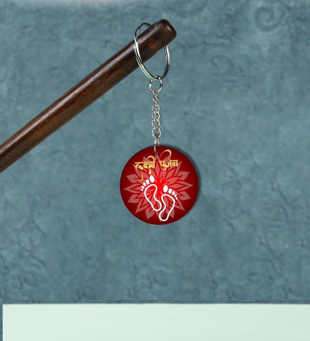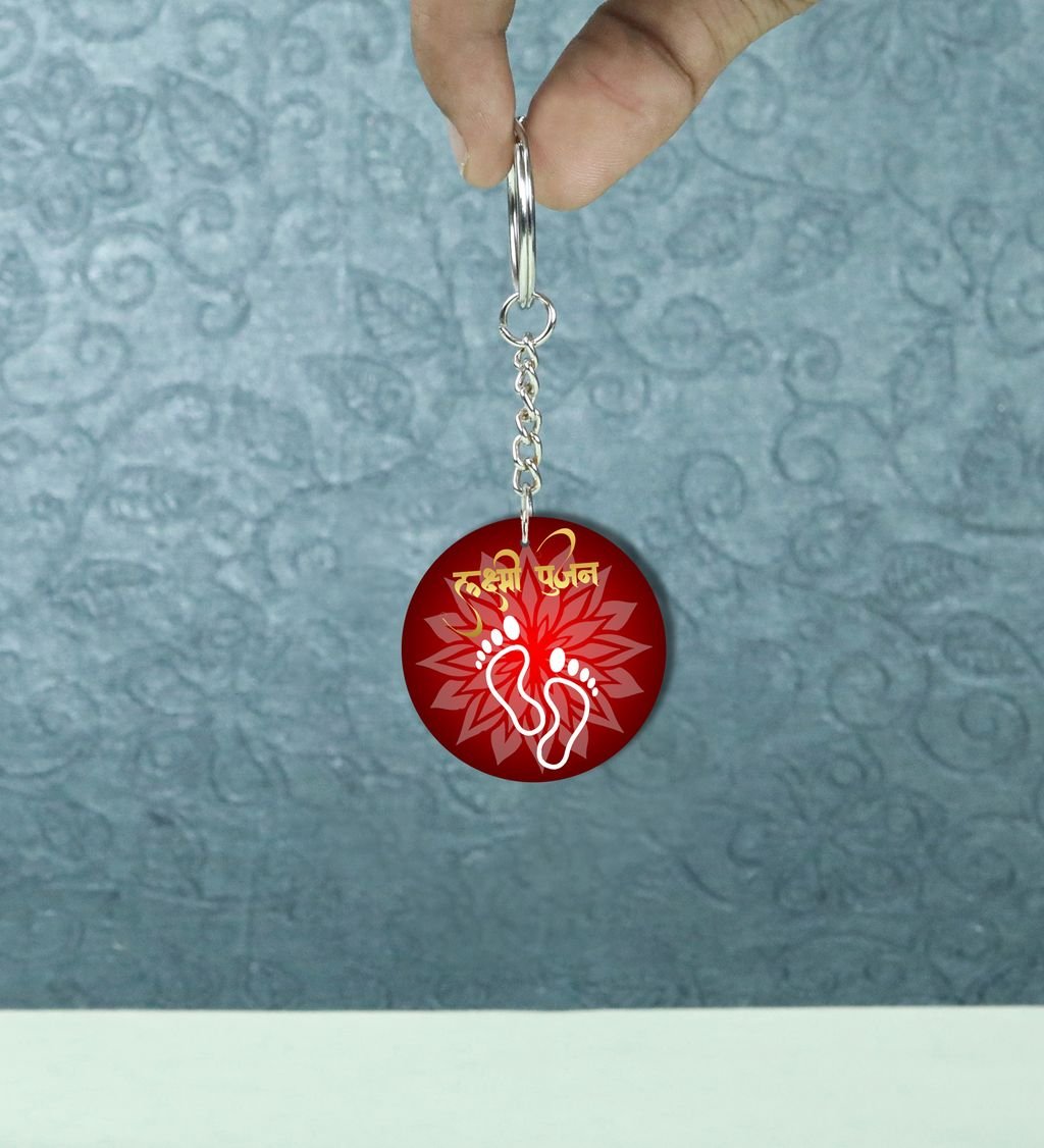 Festival Lamps and Lights Diwali Printed Round Keychain Pack of 2