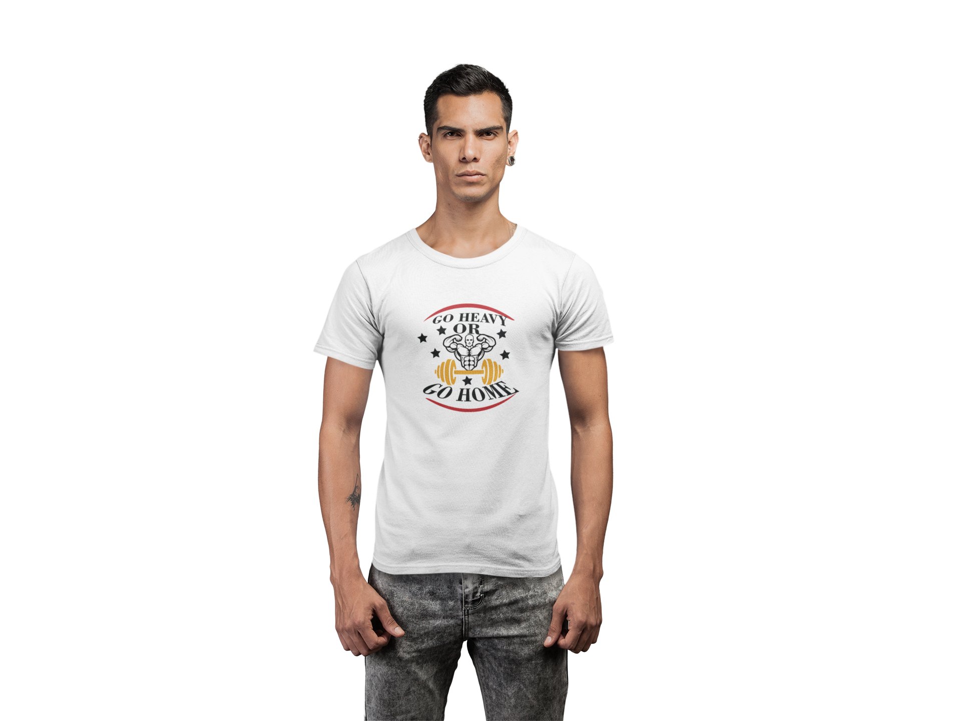 Go Heavy or Go Home Round Neck Gym Tshirt (White Tshirt) - Clothes for Gym Lovers - Suitable for Gym Going Person - Foremost Gifting Material for Your Friends and Close Ones