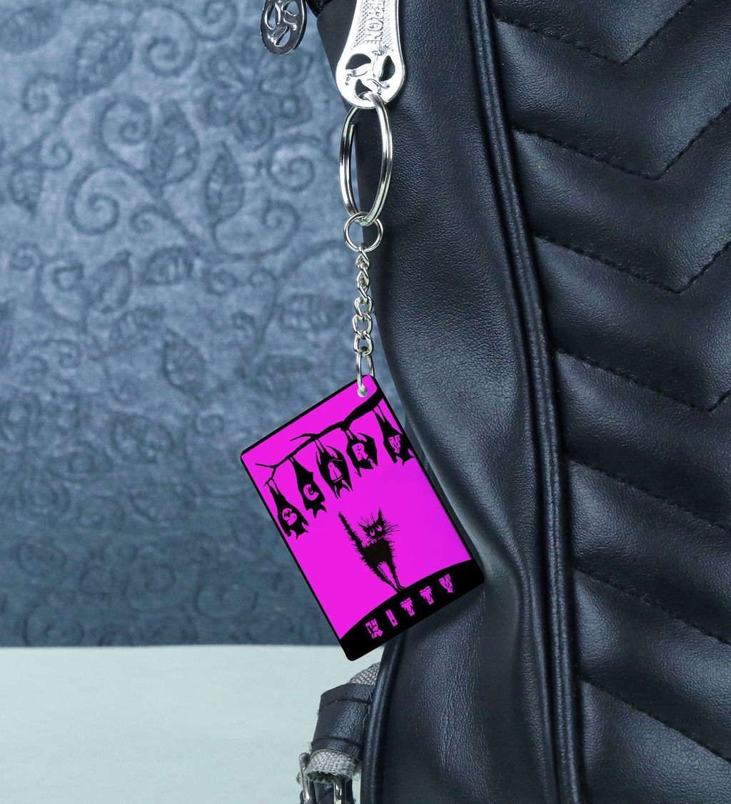 Add a dash of spooky charm to your everyday carry with this Halloween Cat rectangular keychain. Featuring a bewitching black cat design with eerie eyes and festive flair, it
