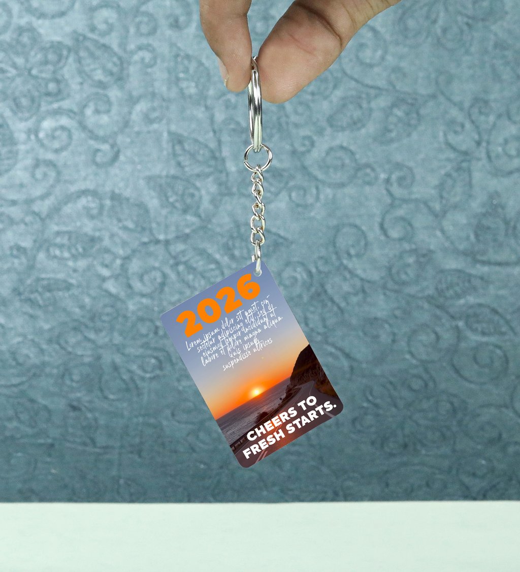 High-Quality Keepsake with a Dramatic Coastal Print Encouraging Optimism and Celebrating the Journey of 2026 Printed Keychain Pack of 2.