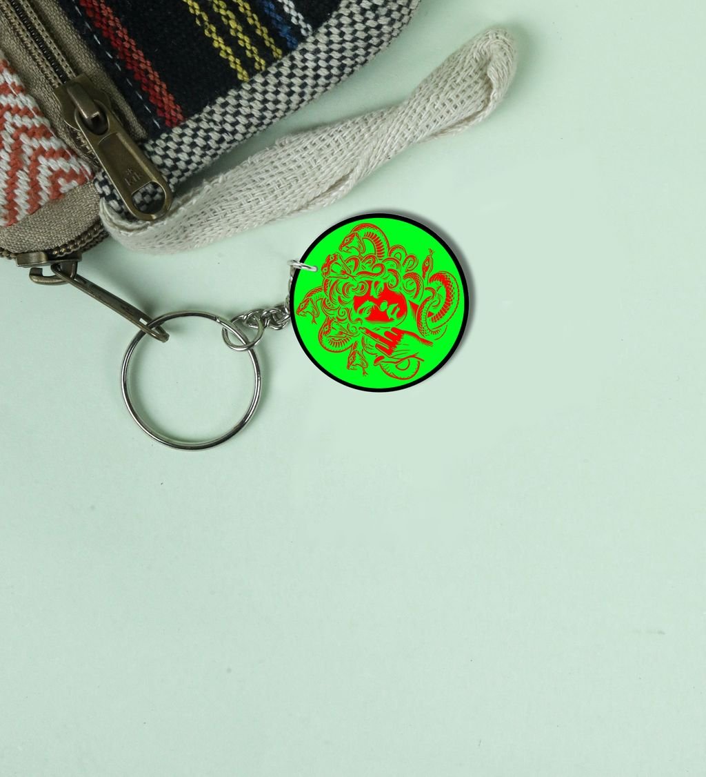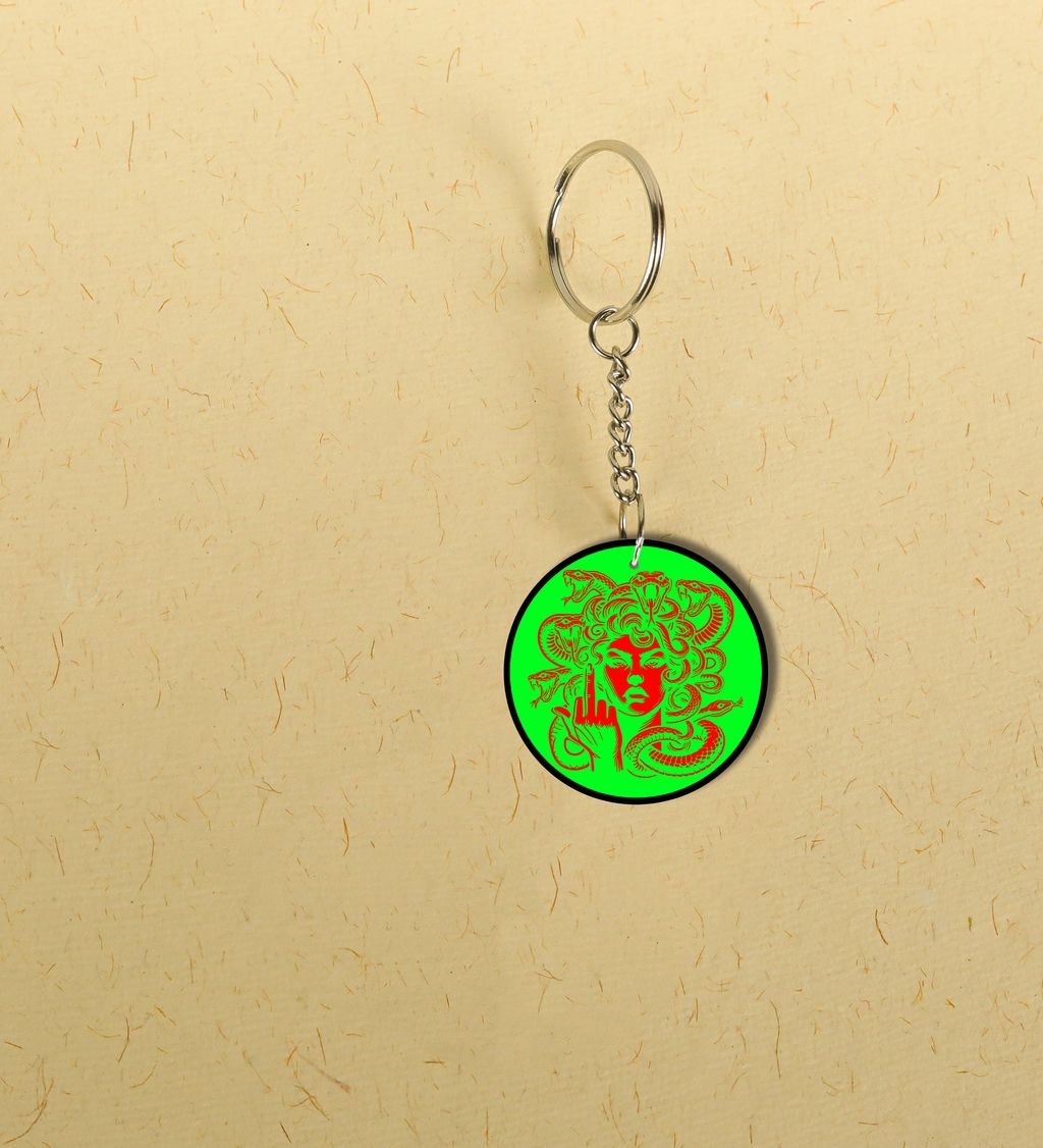 Intriguing Snake-Haired Mythical Figure in Bright Colors Printed Round Keychain Pack of 2