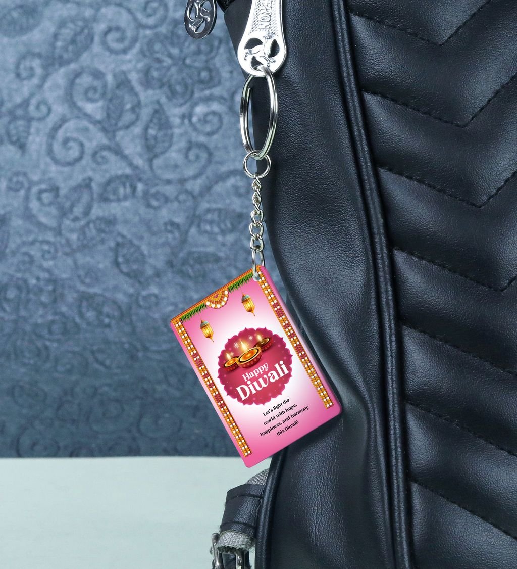 Celebrate the spirit of Deep Utsav with this vibrant rectangular keychain, inspired by the radiant glow of Diwali lamps. Featuring festive colors and intricate patterns, it adds a touch of joy and tradition to your everyday carry. Lightweight and durable, it's perfect for gifting or keeping the festive vibes close all year round. Carry a piece of the festival of lights wherever you go.