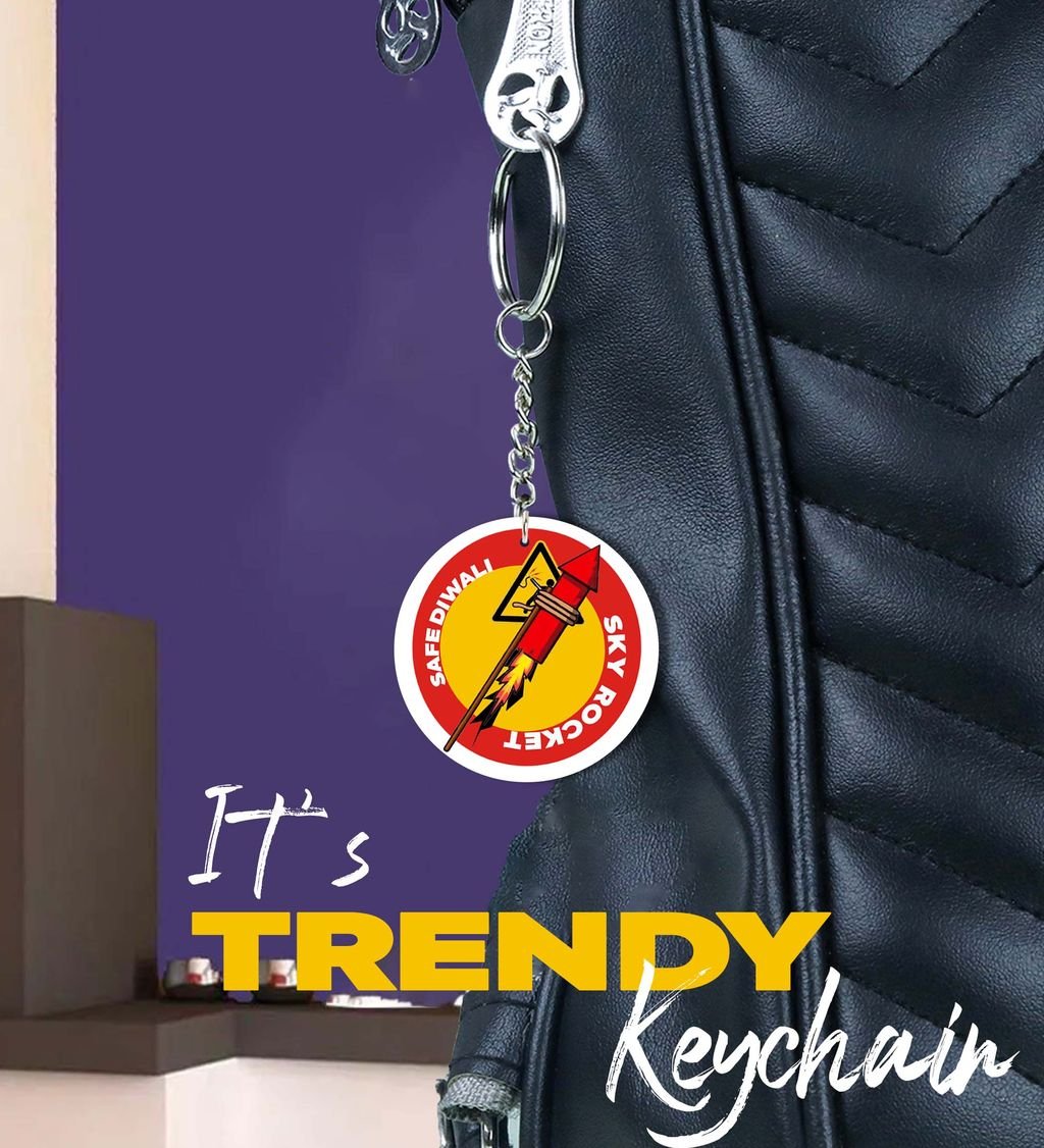"Light Up Your Diwali with a Bright Red Pataka Keychain for Loved Ones - Printed Round Keychain Pack of 2"