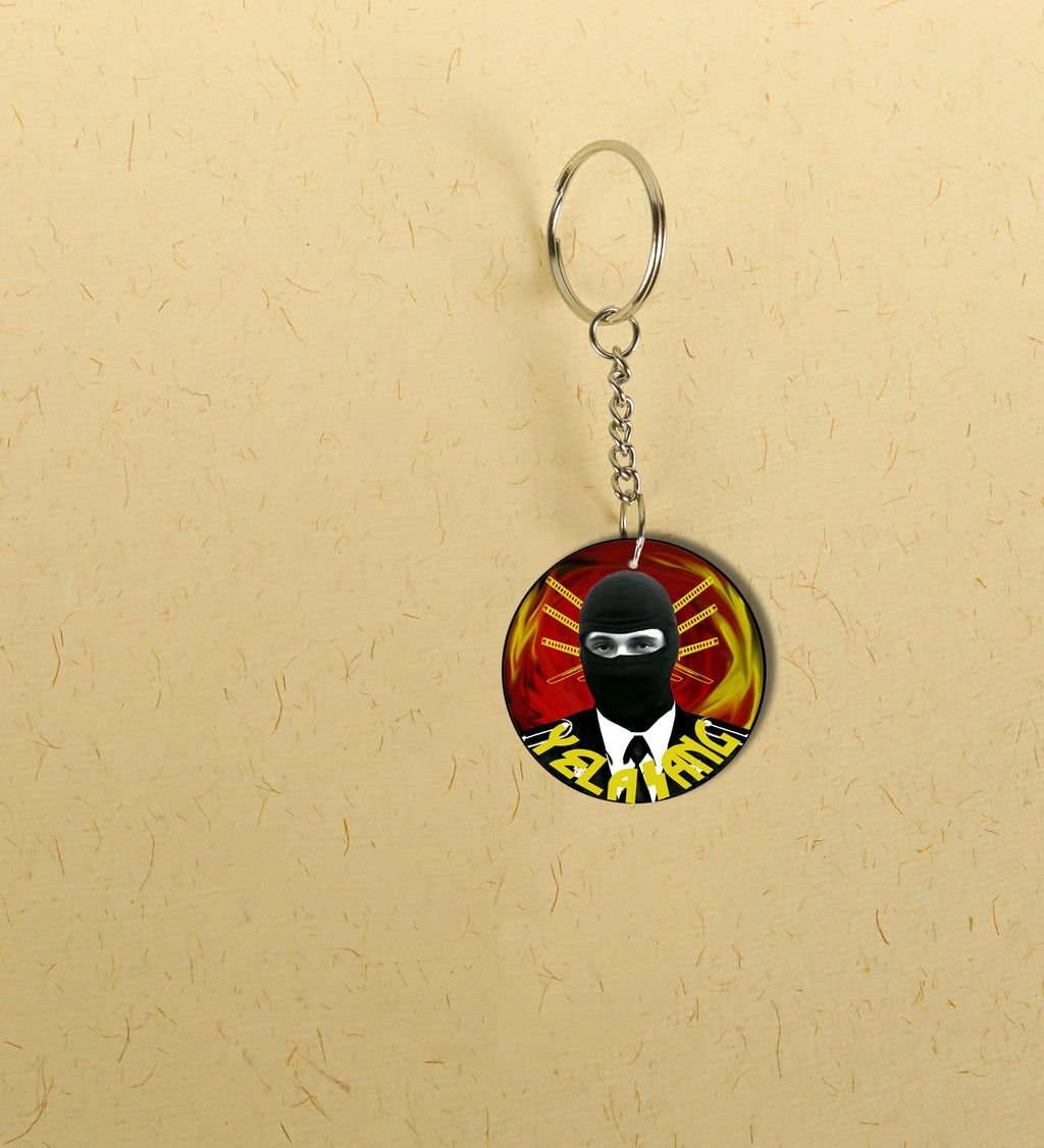 Mystery Fighter With Sword Aura Printed Round Keychain Pack of 2