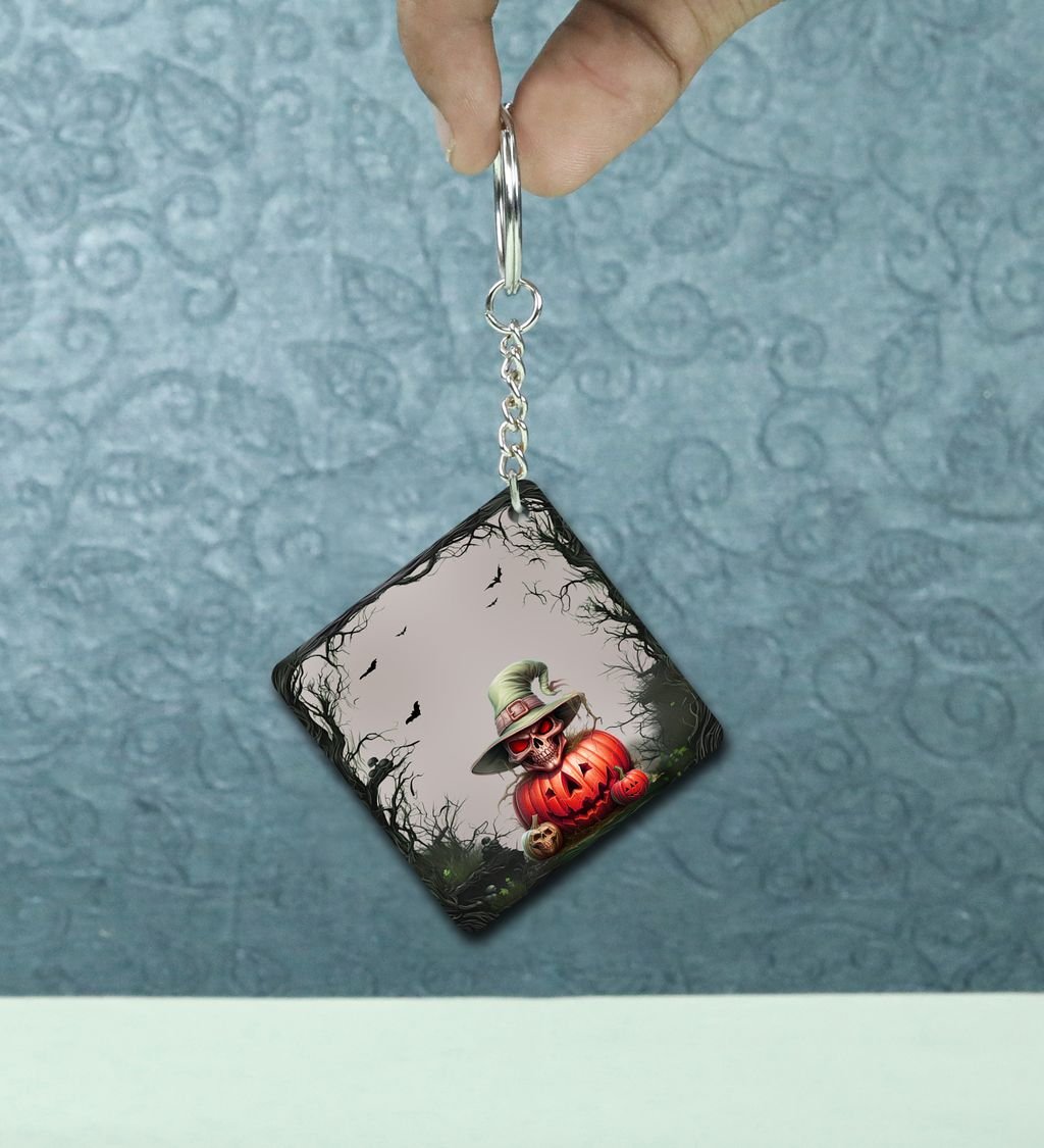 Add a twist of spooky charm to your everyday carry with this Hollo-Wello themed square keychain! Featuring quirky Halloween-inspired art and bold seasonal colors, it