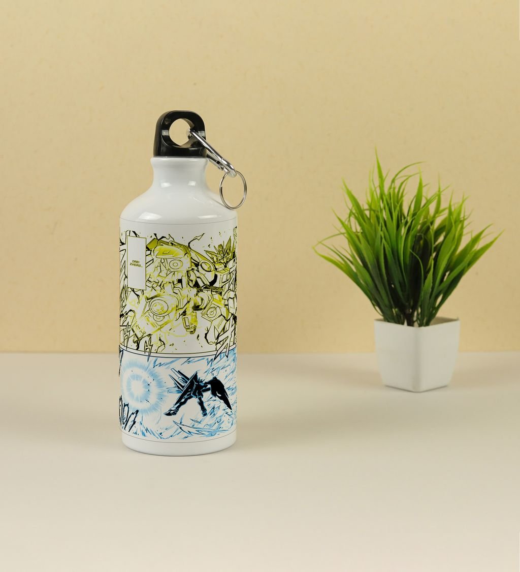 Stay hydrated in style with our Mecha Anime-Themed Printed Aluminium Sipper Bottle (600ml)
