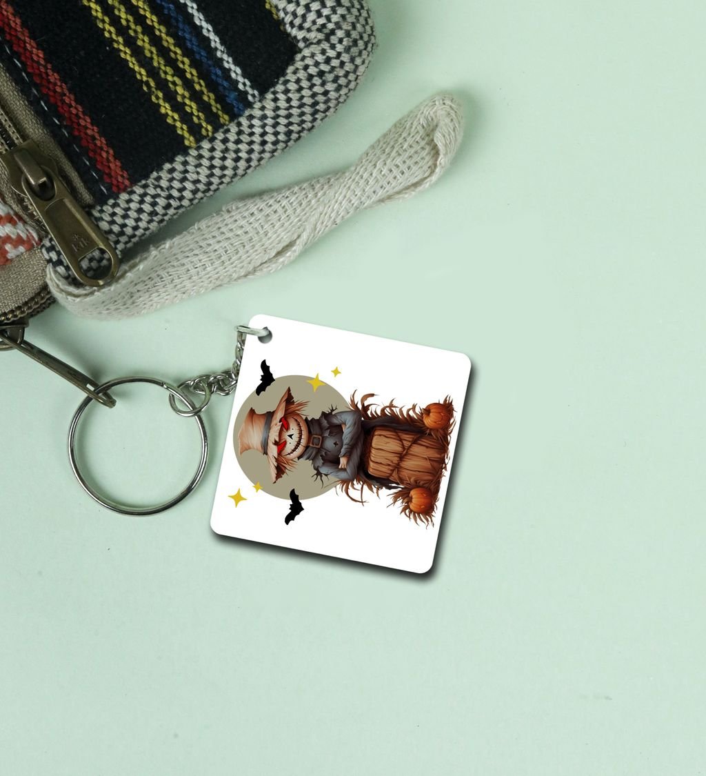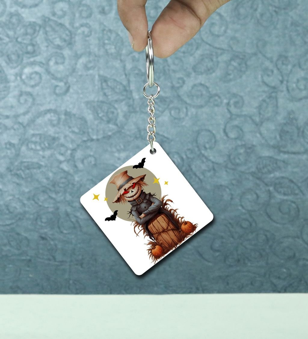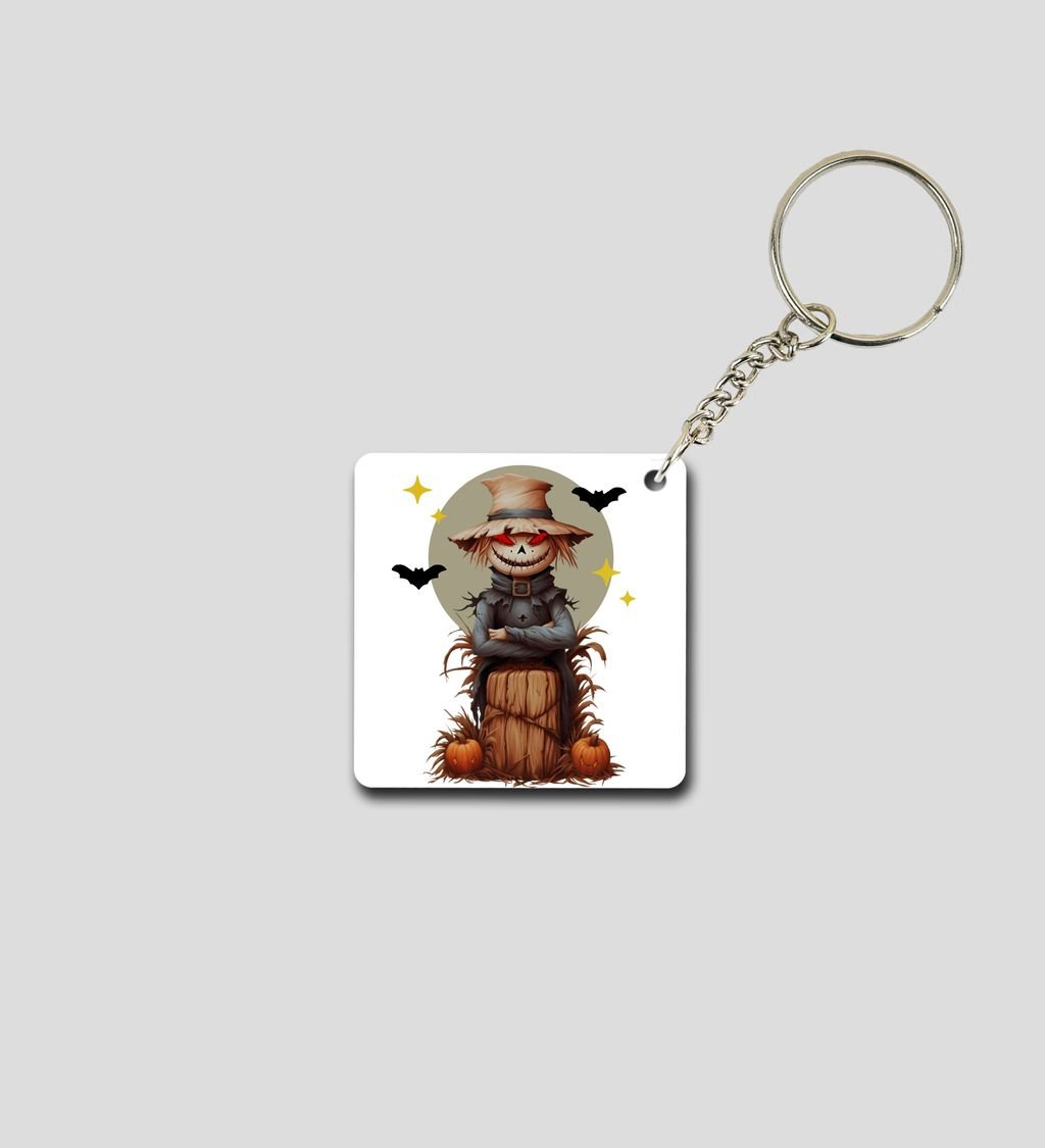 Pumpkin Patch Guardian in Moonlight Halloween Scene Printed Keychain Pack of 2
