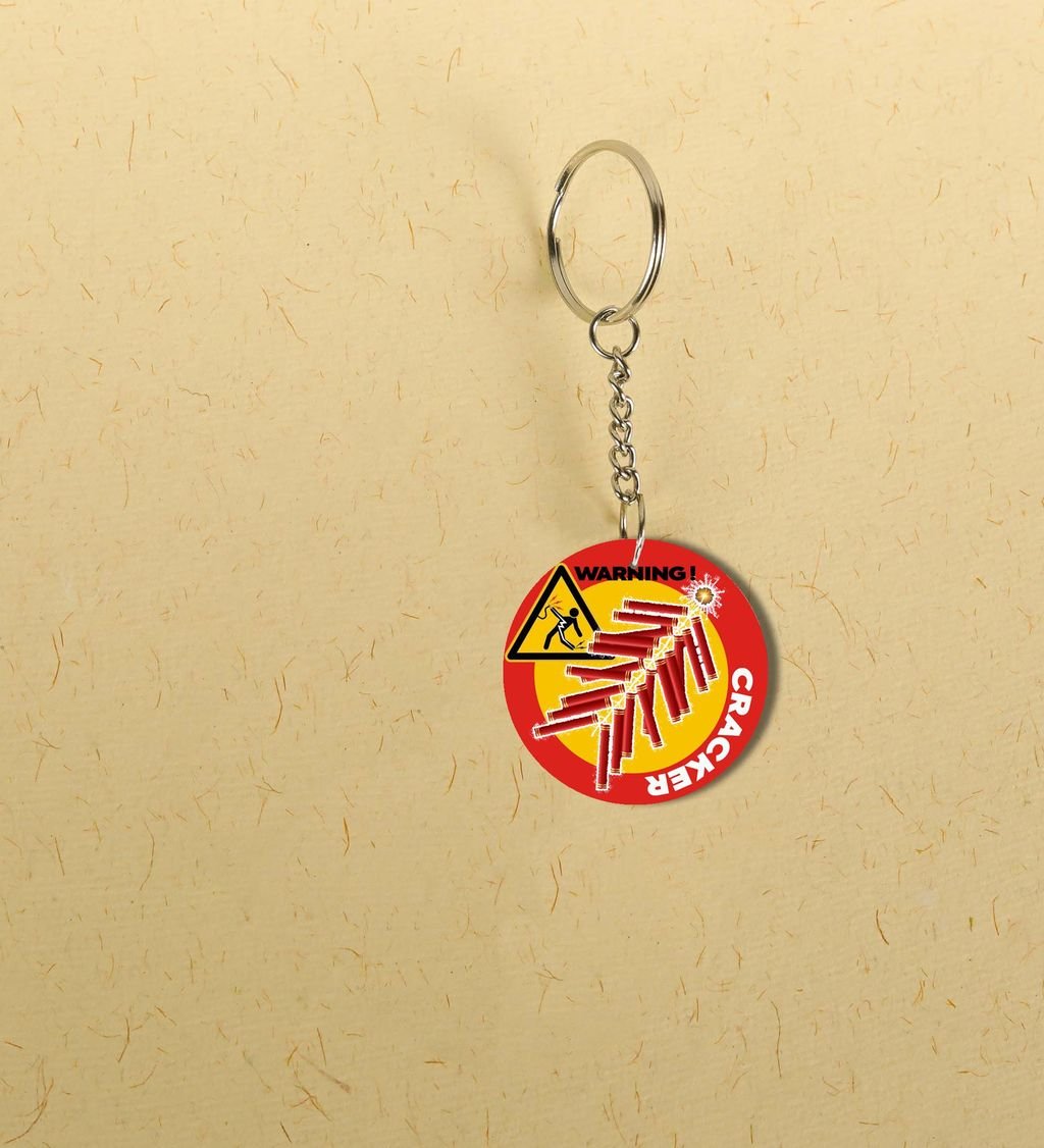 "Send Festive Happiness This Diwali with the Big Red Pataka Keychain - Printed Round Keychain Pack of 2"