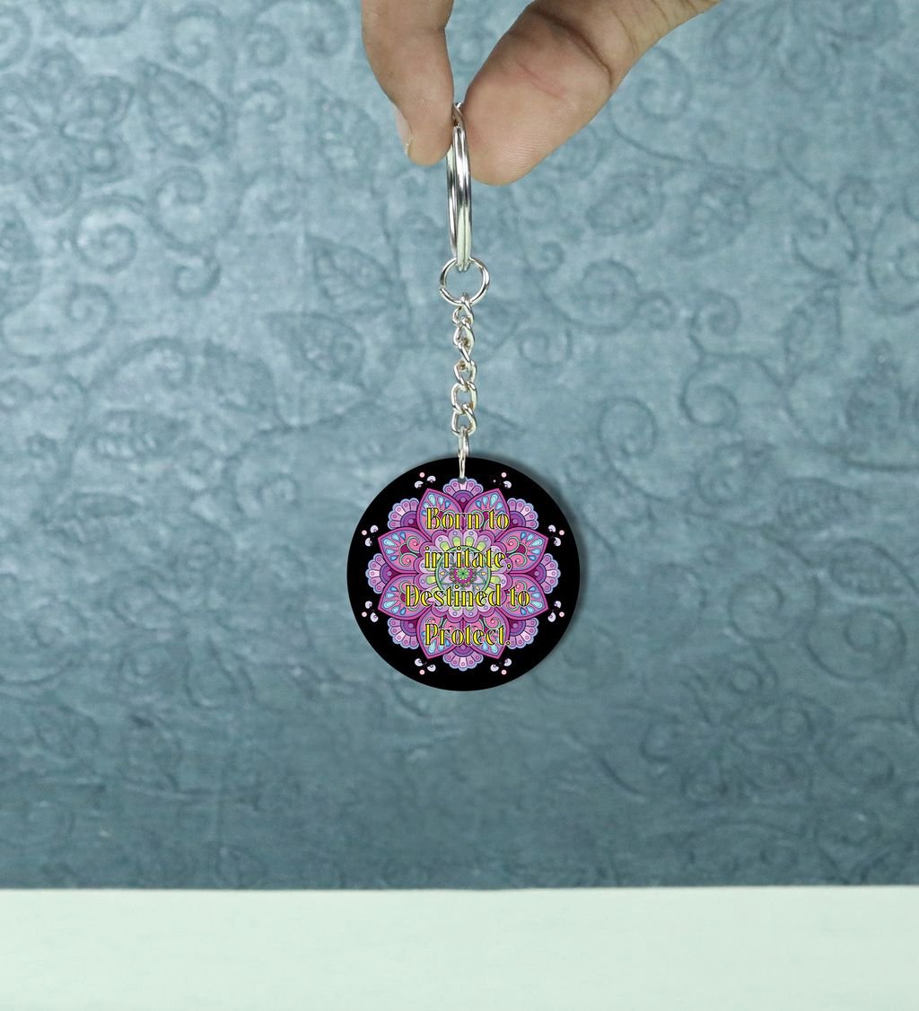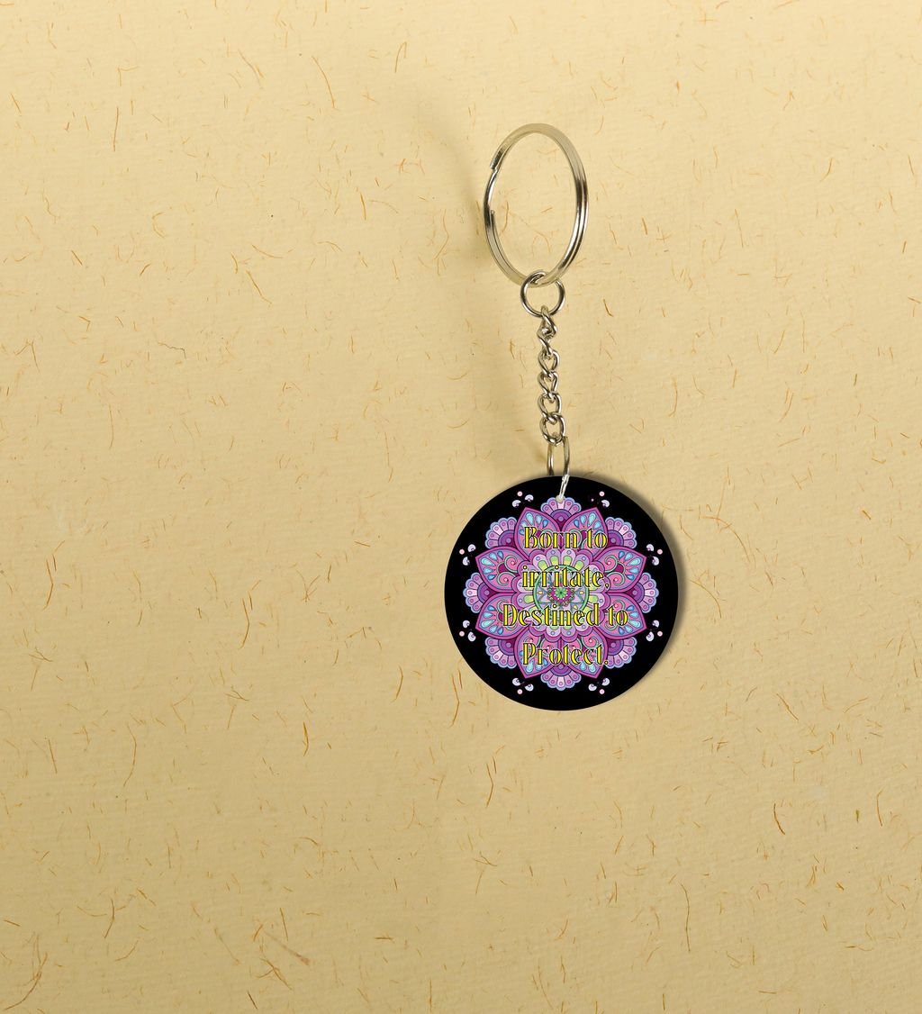 Sibling Fun With Bold Quote Mandala Printed Round Keychain Pack of 2