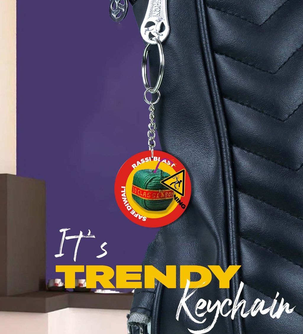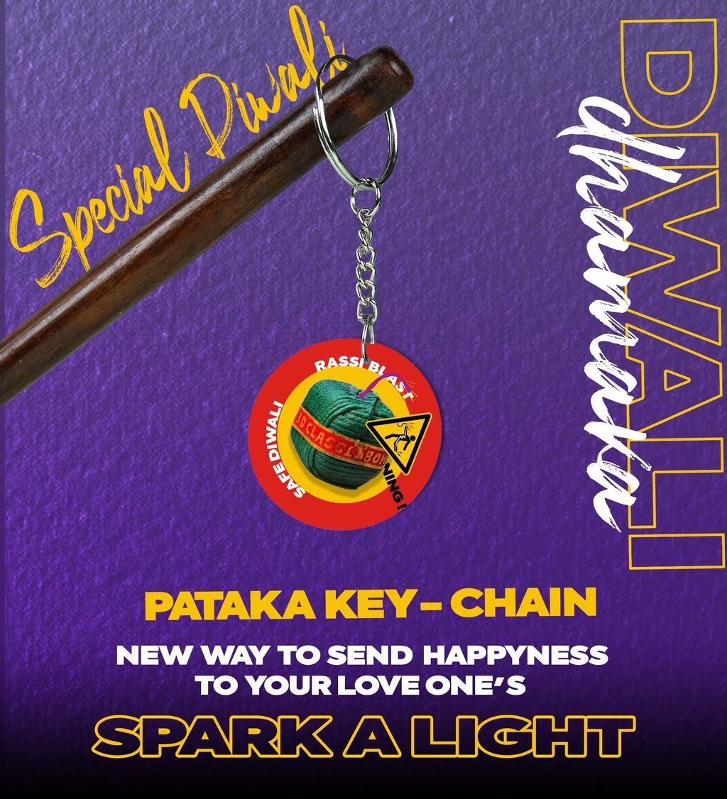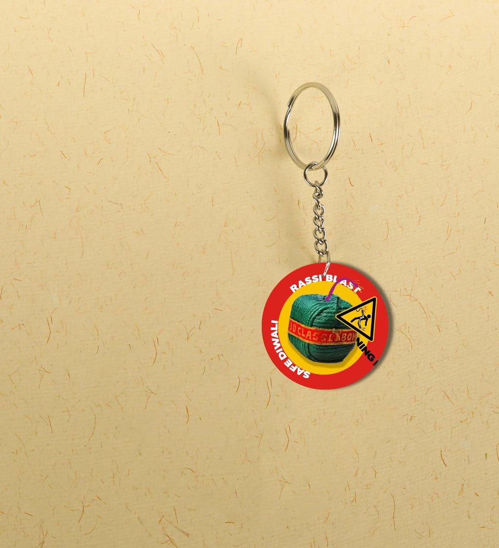 "Spark a Light this Diwali with the Bright Pataka Keychain - Printed Round Keychain Pack of 2"