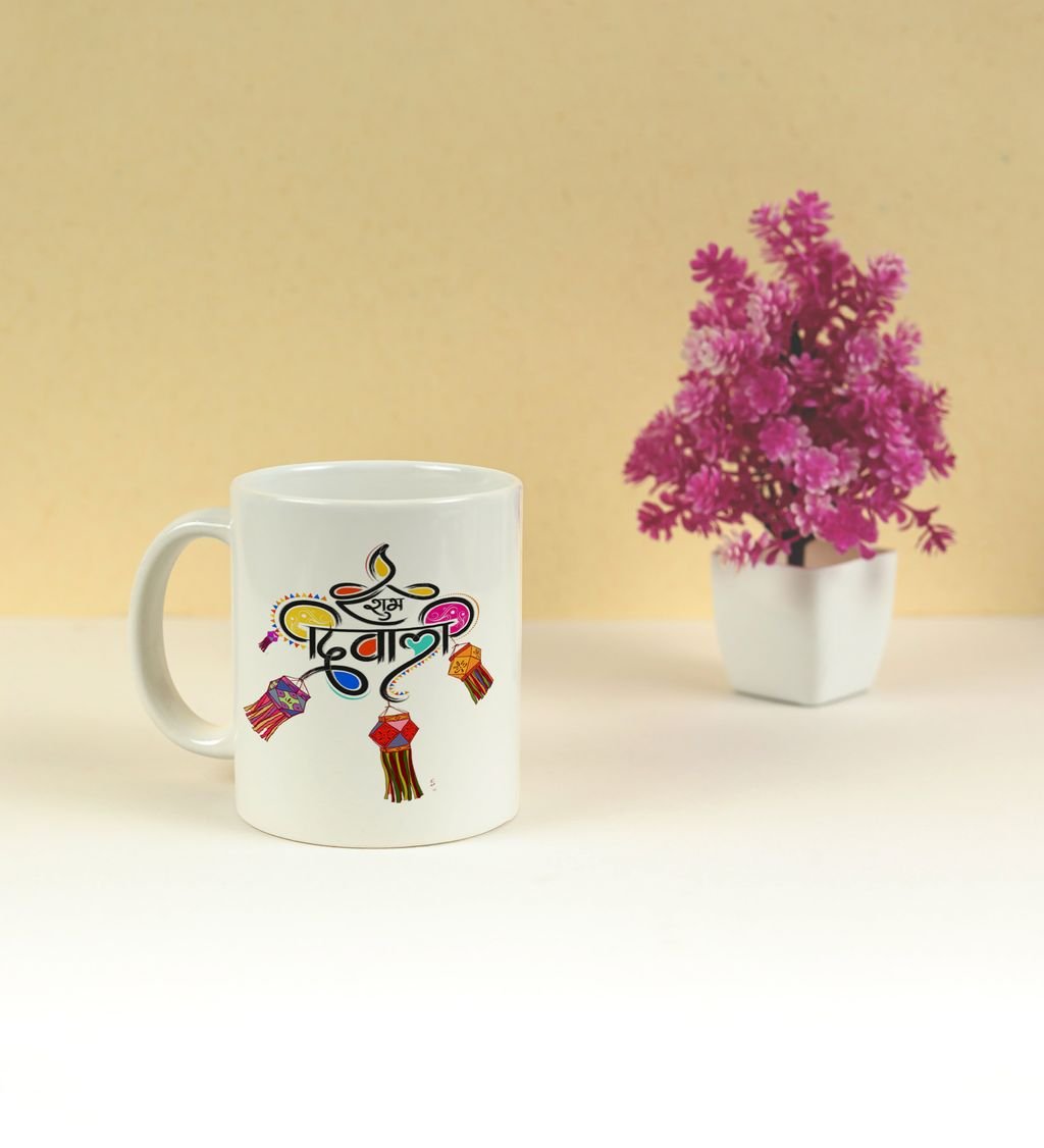 Celebrate the festival of lights with every sip! This beautifully designed Happy Diwali coffee mug adds a festive glow to your mornings and cozy evenings. Featuring vibrant diyas and elegant patterns, it's perfect for gifting or enjoying your favorite brew during the celebrations. Make your Diwali sparkle