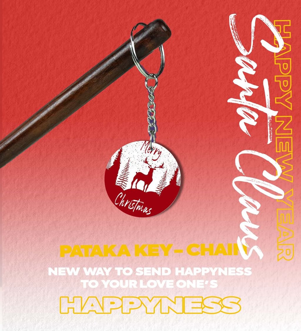 The Start of Festive Cheer with Santa Charm Printed Round Keychain Pack of 2.