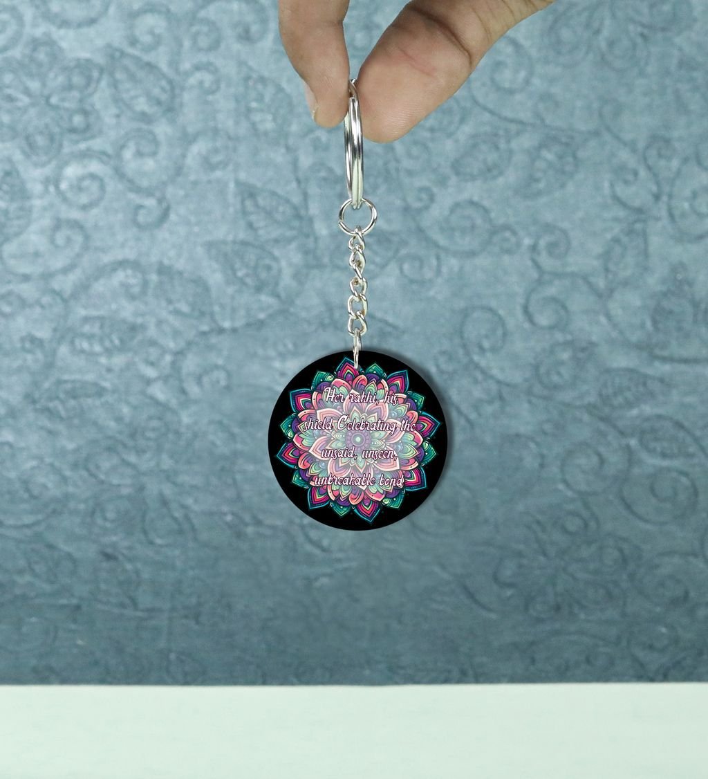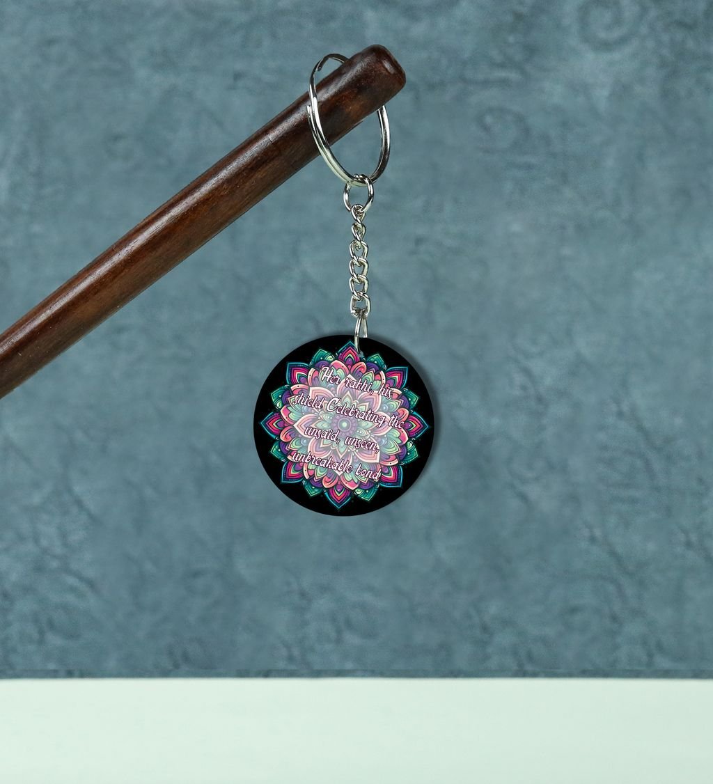 Unbreakable Love Quote With Soft Mandala Printed Round Keychain Pack of 2