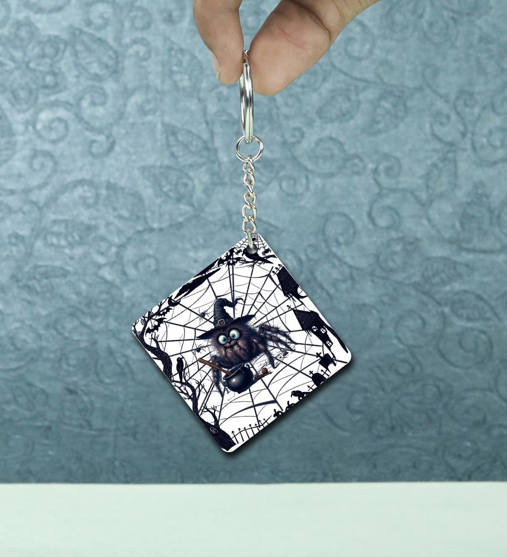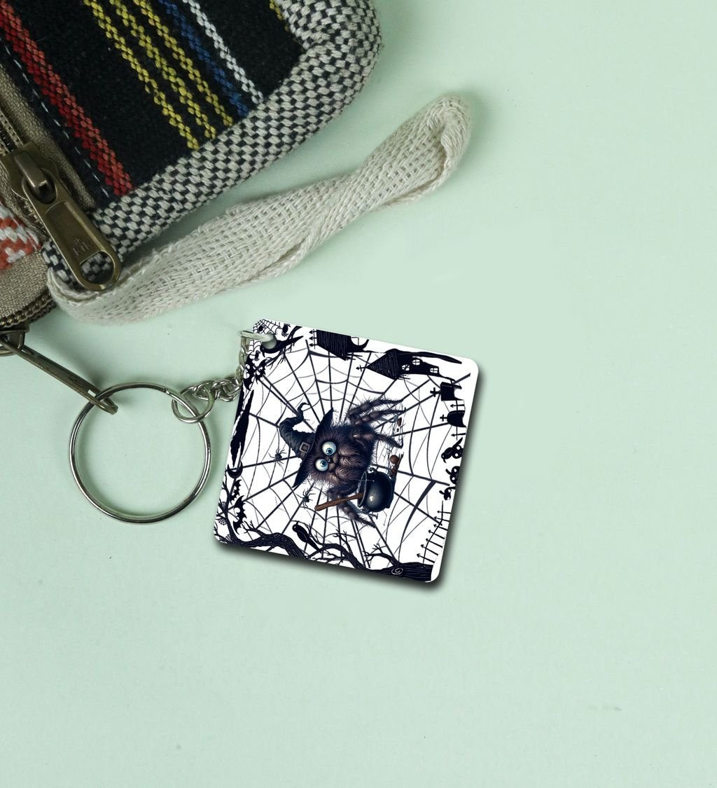 Whimsical Halloween Spider Web Scene Printed Keychain Pack of 2