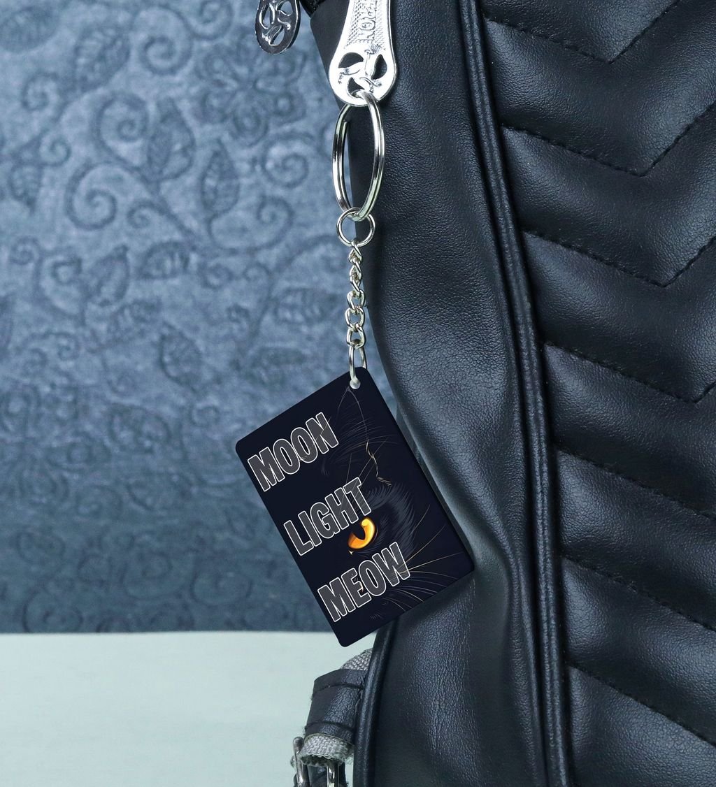 Whiskers In The Moonlight Glow Design Printed Keychain Pack of 2
